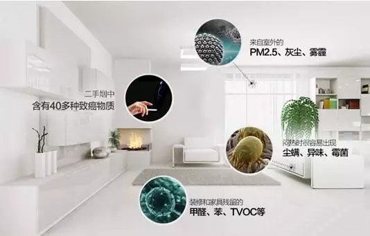 污染物質濃度有所增加 秋冬季門窗密封比較嚴密,室內新風量大大降低,而室內裝飾材料和家具中釋放出的甲醛等有害氣體、燃料燃燒后產生的化學物質、吸煙時產生致癌物質,都會在室內不斷增加而無法稀釋。